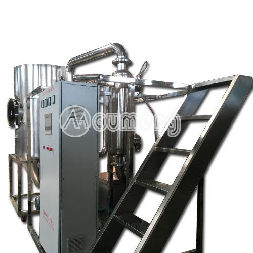 有機溶劑噴霧干燥機是系統(tǒng)組成一個封閉的循環(huán)回路,載熱體可以循環(huán)使用也叫閉式循環(huán)噴霧干燥機。對于揮發(fā)物是有機化學(xué)溶劑、有毒或逸出后能對人身、環(huán)境造成危害物料的干燥,料液中含有的有機溶劑或產(chǎn) 品是易氧化、易燃、易爆的物料,一般情況下,需用這種流程的物料都是不能接觸氧氣的,所以載熱體大多使用惰性氣體(如氮氣、二氧化碳等);此種方式又稱惰 性氣體干燥。從干燥器排出的尾氣,經(jīng)過氣固分離后還要經(jīng)過冷凝器回收溶劑或去除濕分,再經(jīng)加熱器升溫后進入干燥器進行循環(huán)使用。通過載熱體和閉式循環(huán)方 式,我們可以有效的避免物質(zhì)干燥遭遇高溫危險、防止噴霧干燥過程中與氧氣接觸,粉塵90%以上回收等。